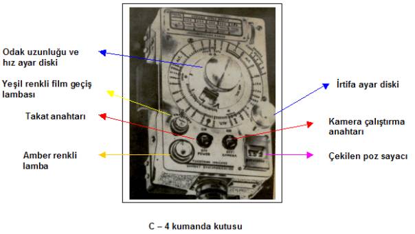 Kokpitte bulunan C – 4 kumanda kutusu; dik açılı kamera