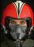 ağzında oksijen maskesi ve üstünde de basınç elbisesi olduğu