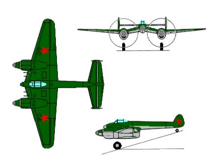 engines/motorlar: 2 ad. Shvestov M-82F or/veya 2 ad. Mikulin AM-37,